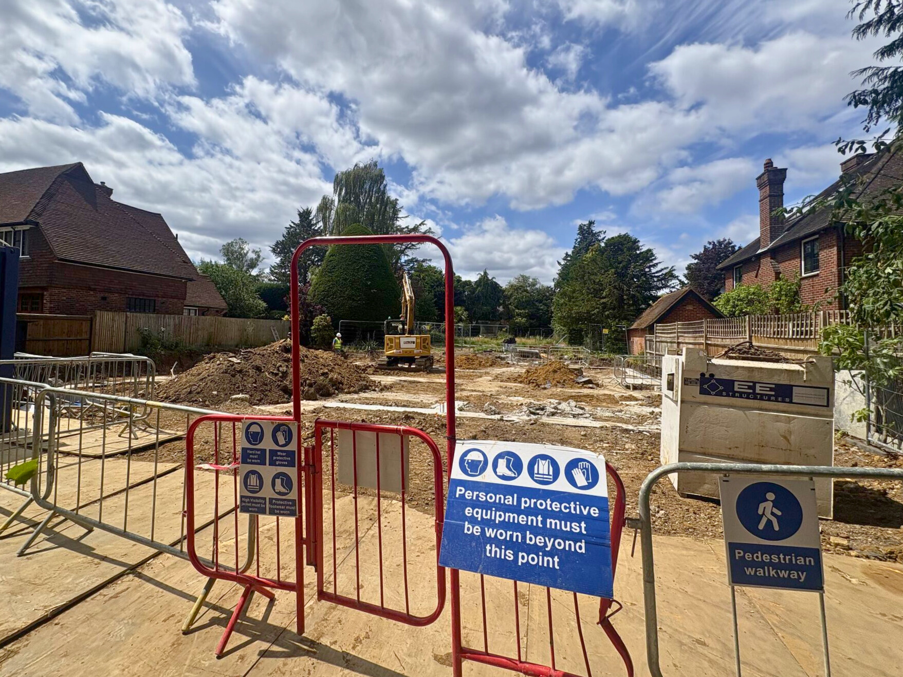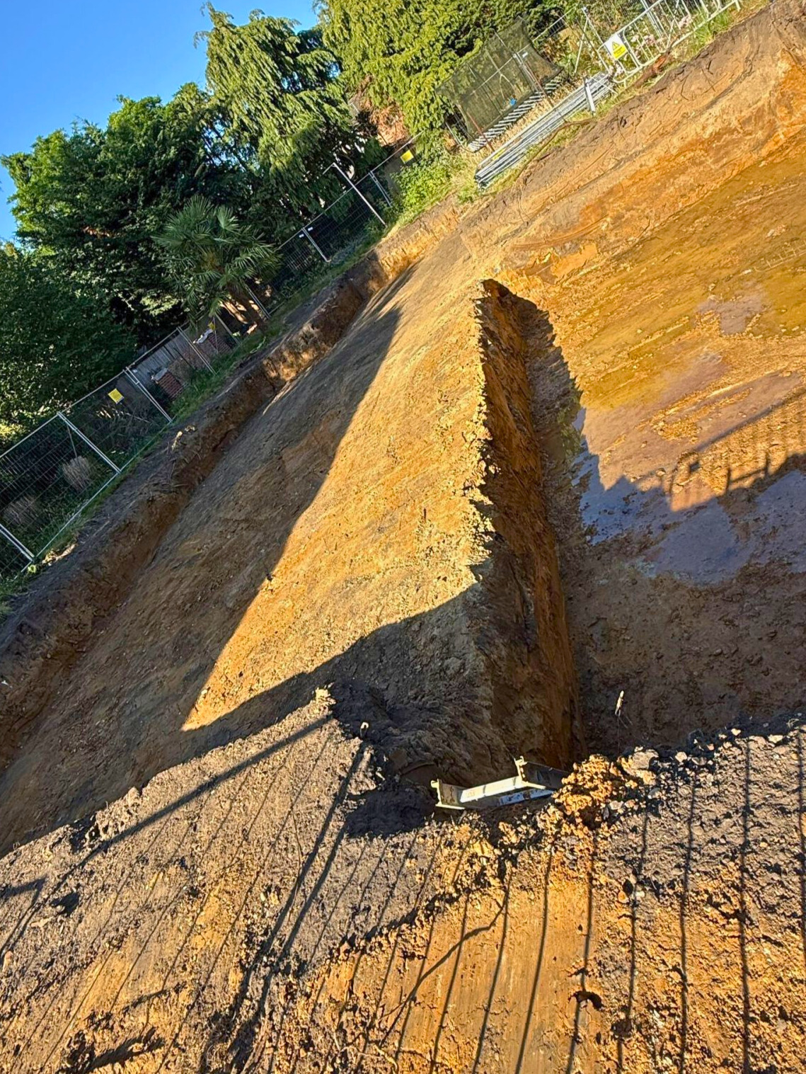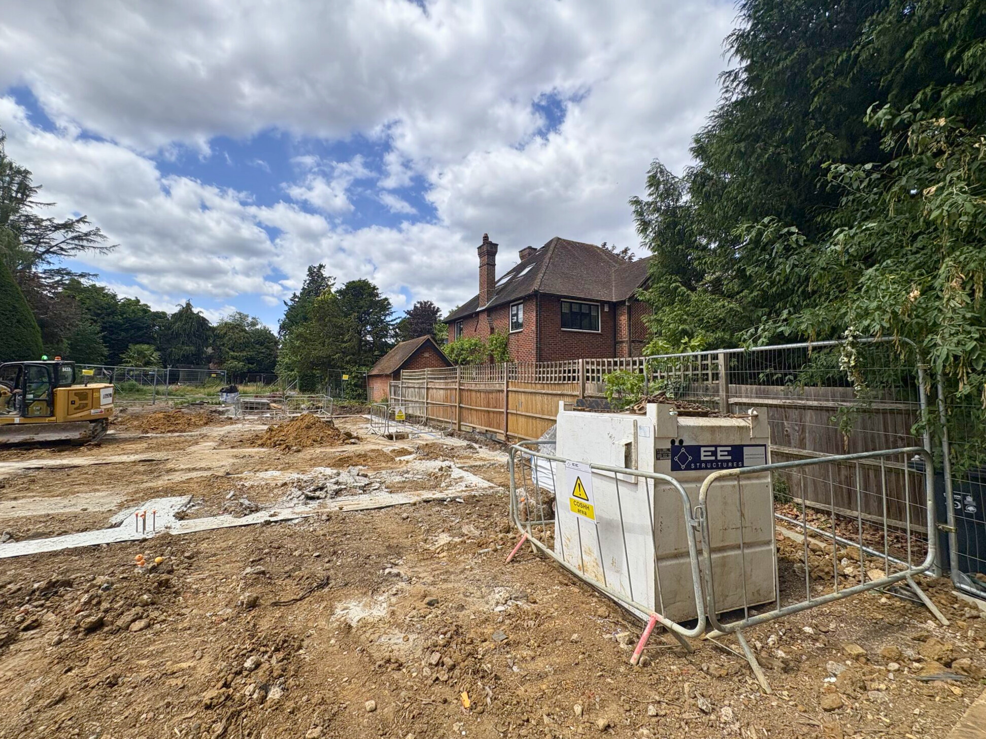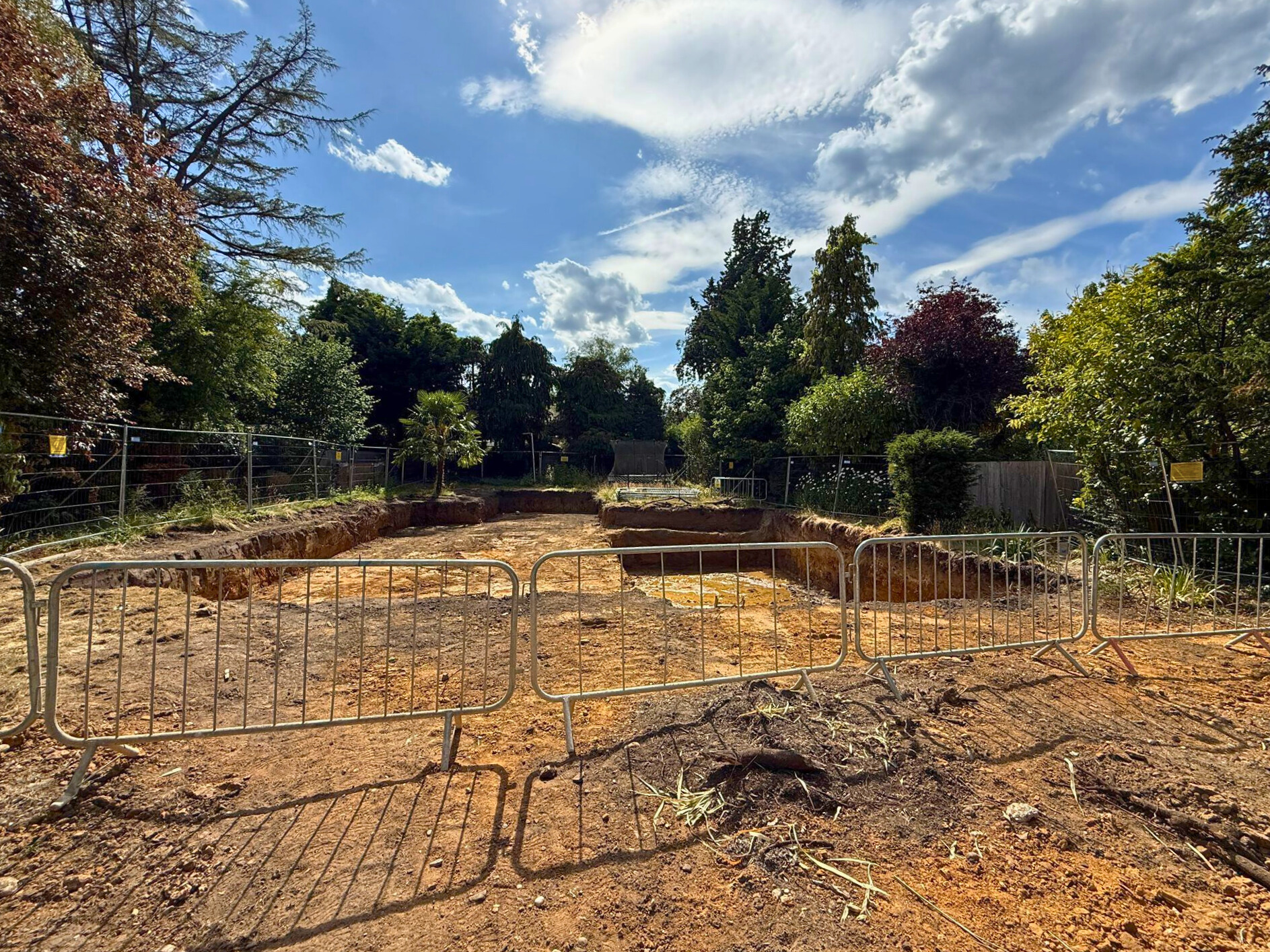 Following full mobilisation and site clearance, we’ve carried out reduced-level excavation across the site, along with digging and pouring foundations for the new build, and excavating the swimming pool and attenuation tank.